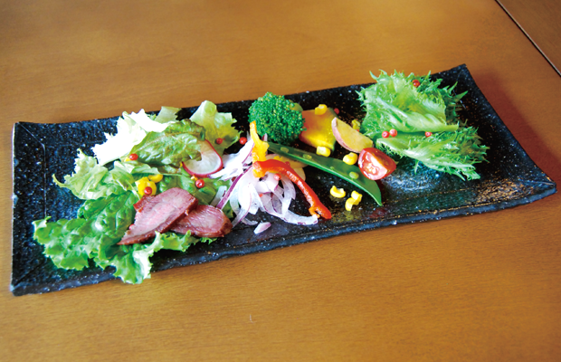 うどん出汁を使ったスープ、季節の前菜をお楽しみください。